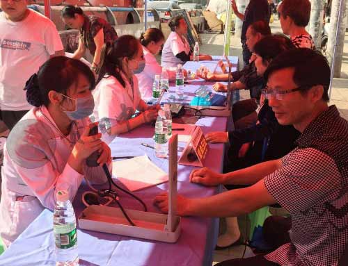 活動現場,來自黑龍江京科腦康醫院的醫護人員和志愿者們為提供各科免費健康咨詢、測量血壓血型、測身高體重、中醫把脈、量血糖等,受到了附近居民的熱烈歡迎,居民咨詢熱情高漲。